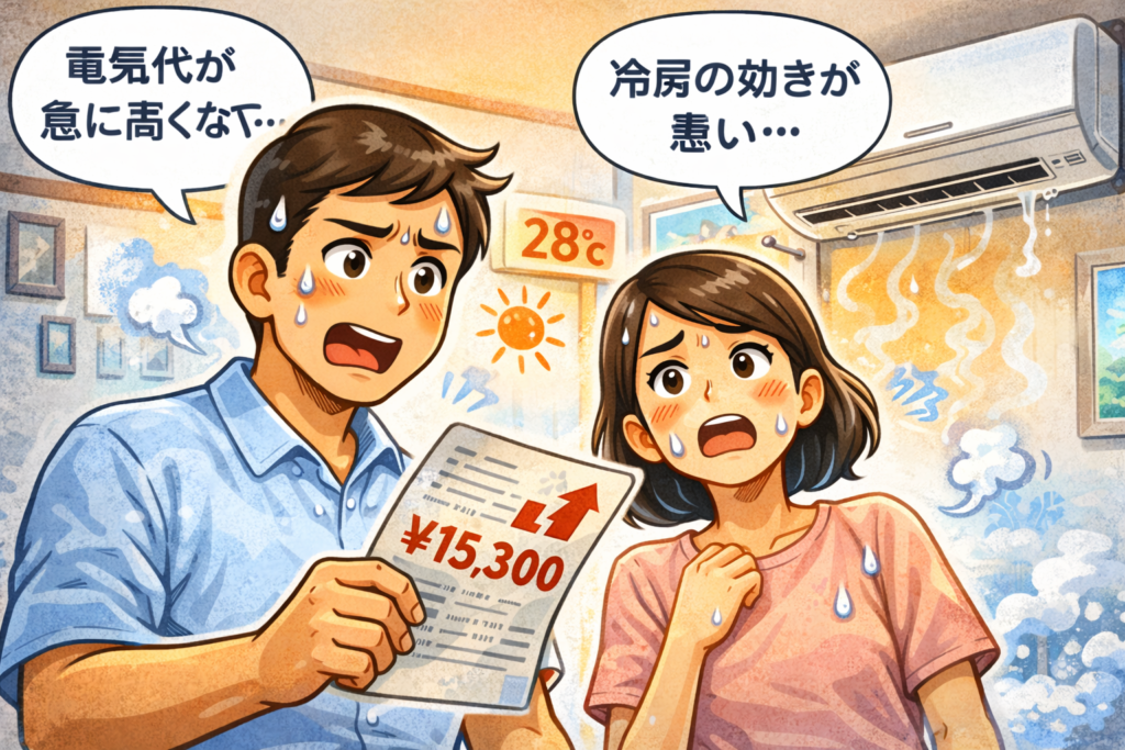 「冷房の効きが悪い」「先月の電気代が急に高くなった」